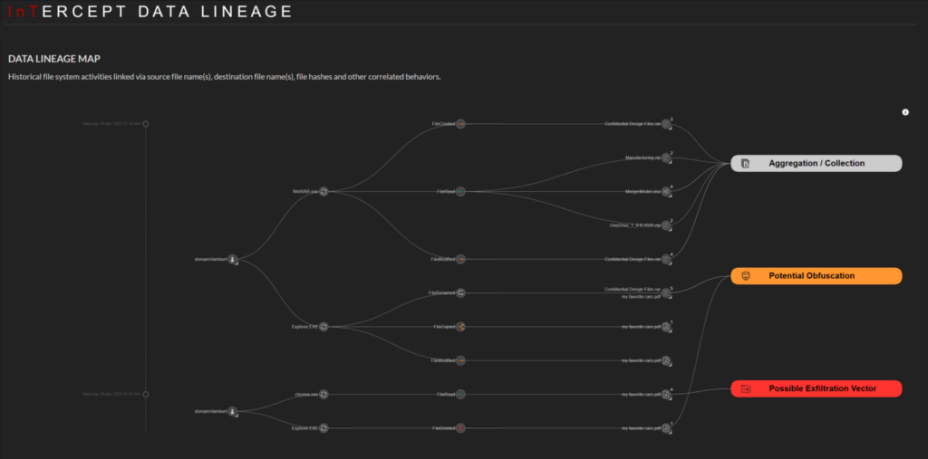 File lineage enables insider risk teams to identify the data with the highest risk of being exfiltrated as well as identify the employees that are putting the data at the most risk. With this understanding comes the power to course correct in a way that is proportional to the level of risk posed.