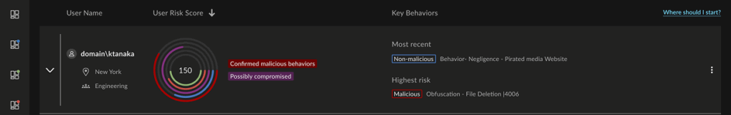 Because activity is grouped by end user and can include the user’s location and peer group (AD), analysts better understand the highest risk people. Context is king. This update combines all the meaningful data that drives analysts more efficiently in the immediate direction of that needle in the haystack.