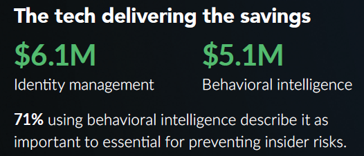 Identity management and behavioral analytics are also becoming foundational, delivering the biggest impact at reducing insider risk costs.