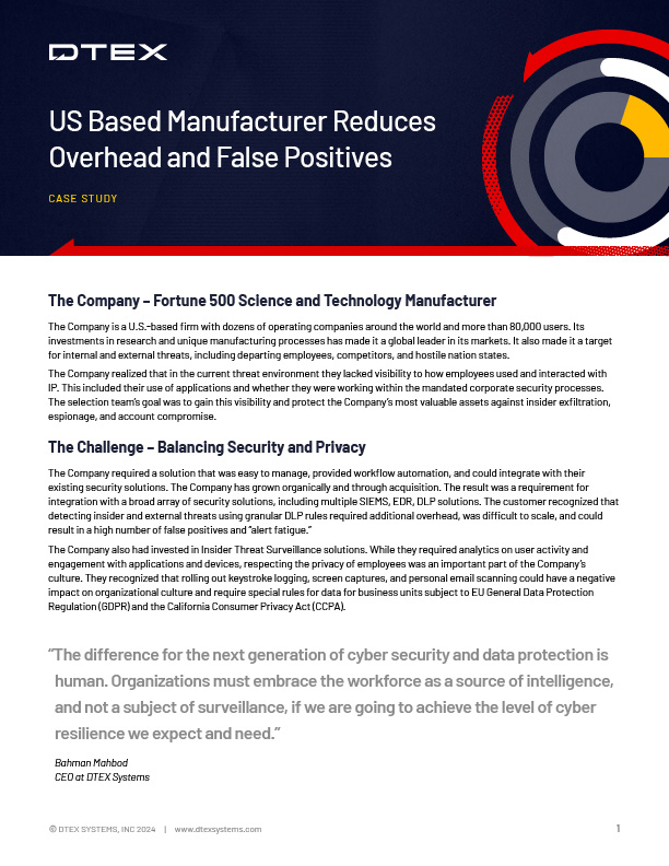 DTEX provided a solution that was easy to manage, provided workflow automation, and could integrate with their existing security solutions.