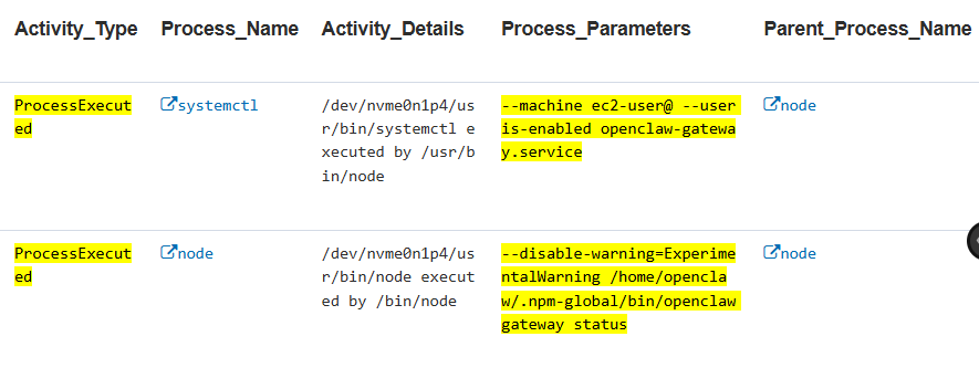A counterintuitive finding emerged during testing: containerized deployments can sometimes produce clearer visibility, even though the AI agent runs inside a container. That happens because the orchestration layer — Claude Code, Telegram bridge, SSH tunnels, OpenShell — runs on the host and generates process telemetry visible to the Forwarder. By contrast, host-level OpenClaw deployments may run as a single long-lived Node process with minimal shell spawning, which produces fewer behavioral artifacts.