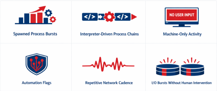 These signals help identify AI agent activity on endpoints even when the full execution chain is not visible.