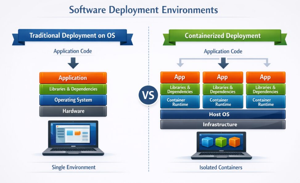 - Containerized deployments, where each application runs in its own packaged environment